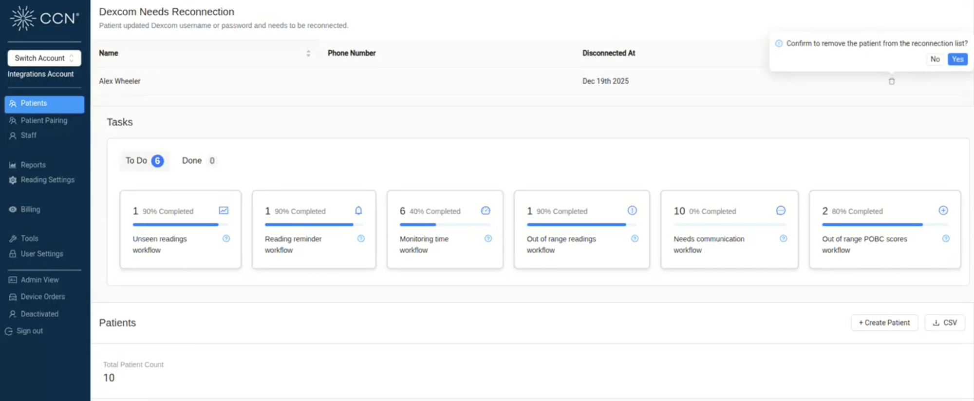 We've updated the Dexcom reconnection alert feature to include the option to delete an alert from the queue for deactivated CGM patients.